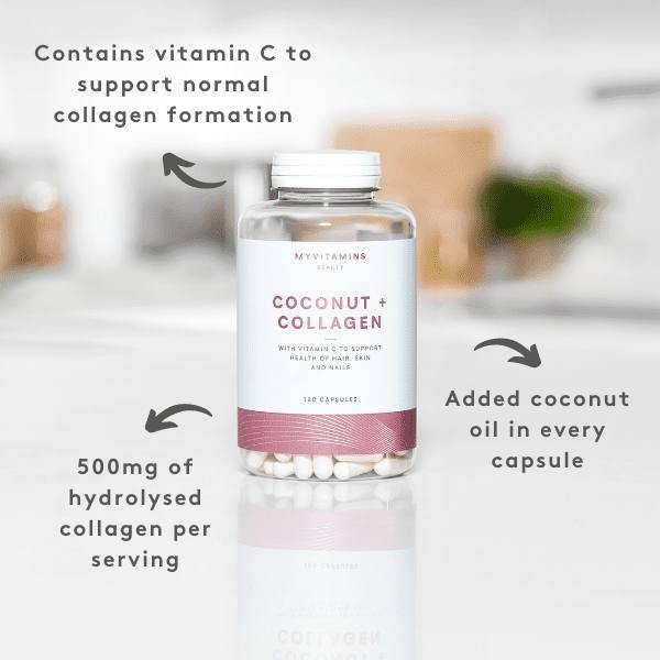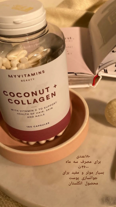 مکمل Coconut Collagen Myvitamins که با دارا بودن Collagene Hydrolyse به کلاژن سازی بیشتر و باز سازی پوست شما و همچنین سفت شدن آن کمک خواهد و با کمک Coconut Oil چربی پوست شما را تنظیم کرده و لطافت و درخشنگی پوست شما باز خواهد گشت.